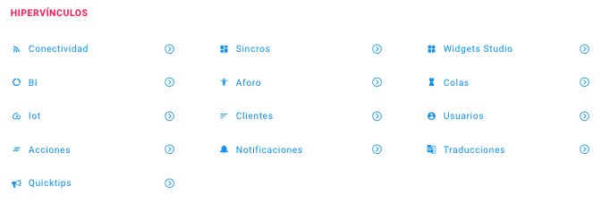 Por otra parte, están los Hipervínculos para perfiles más técnicos como el de Conectividad para monitorizar la conexión a internet de los dispositivos; el de BI y IoT para que los que tienen activado el servicio, consulten los dashboards de Business Intelligence u otros relacionados con los dispositivos de hardware conectados a su cuenta; y el de Acciones, un enlace para que resellers realicen actividades masivas de soporte a su parque de dispositivos.